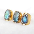 Free shipping new Labradorite Cuff Ring pendangt pave with cz on edeged Fashion druzy bang ring Gold Plated JAB129USD 38.00/lot