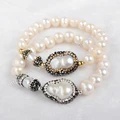 Handcraft Hot! Pearl bracelet Natural free-form Pearl Paved gold/white CZ with natural irregular White Pearl Beads bangle 174USD 38.00/lot