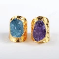 amethyst Cuff Ring Gold Plated Freeform Natural Agate Stone Druzy Geode Band Ring Fashion Jewelry G0341 in wholesale price 341USD 33.00/lot