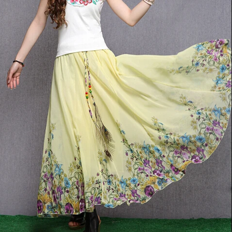 New Fashion Nation Style Bohemia Skirt Womens Cotton Long Skirts Female Fall Beach Casual Ruffles Big Pendulum Maxi Skirt NO023