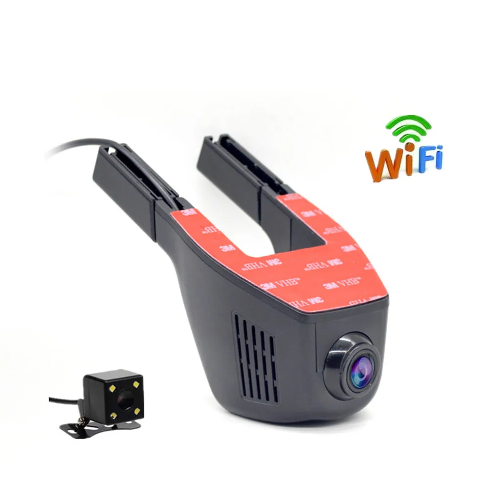 New MiniCar DVR Wifi Video Recorder Full HD 1080P Car Camera Dashcam Dual Lens Automobile Camcorder Car Black Box Registrator Features: 1080P,720Presolution Lens: 140 degree full glass lens Built-in WiFi Discreet Design Loop recording: automatically overwrites oldest video file with newest Accident Auto Detection Feature (G-Sensor) can locks data to memory Multi-language support With 3M adhesive mount, convenient installation Specifications: Video Resolution: 1080P/ 720P File Format: Image: JPG, Video: AVI. Power-off File Recovery Function: Support. Date Time Mark: Support. Memory Card: Support up to 32GB Language System: English/ French/ Spanish/ Portuguese/ German/ Italian/ Simplified Chinese/ Traditional Chinese/ Russian/ Japanese. USB: Support. Audio Recording: Support. Tips: Resolution:Using app to connect the car camera, please choose 720P or WVGA , it is would be more Fluency In order to save the file you are interested in,the camera won\'t delete the locked files in two situation, 1, when the camera is recording ,press the lock key, this file won\'t be deleted. ​2,Choose turn on G-Sensor in the menu, when the vehicle meet the crash from the outside, the recorded file won\'t be deleted.(please set G-Sensor leave 4G.2G is too senstive, it would lock alot of files, then it will affect the cycle recording. Package Includes: DVR Car Charger Rear Camera Rear Camera Connect Cable User Manual
