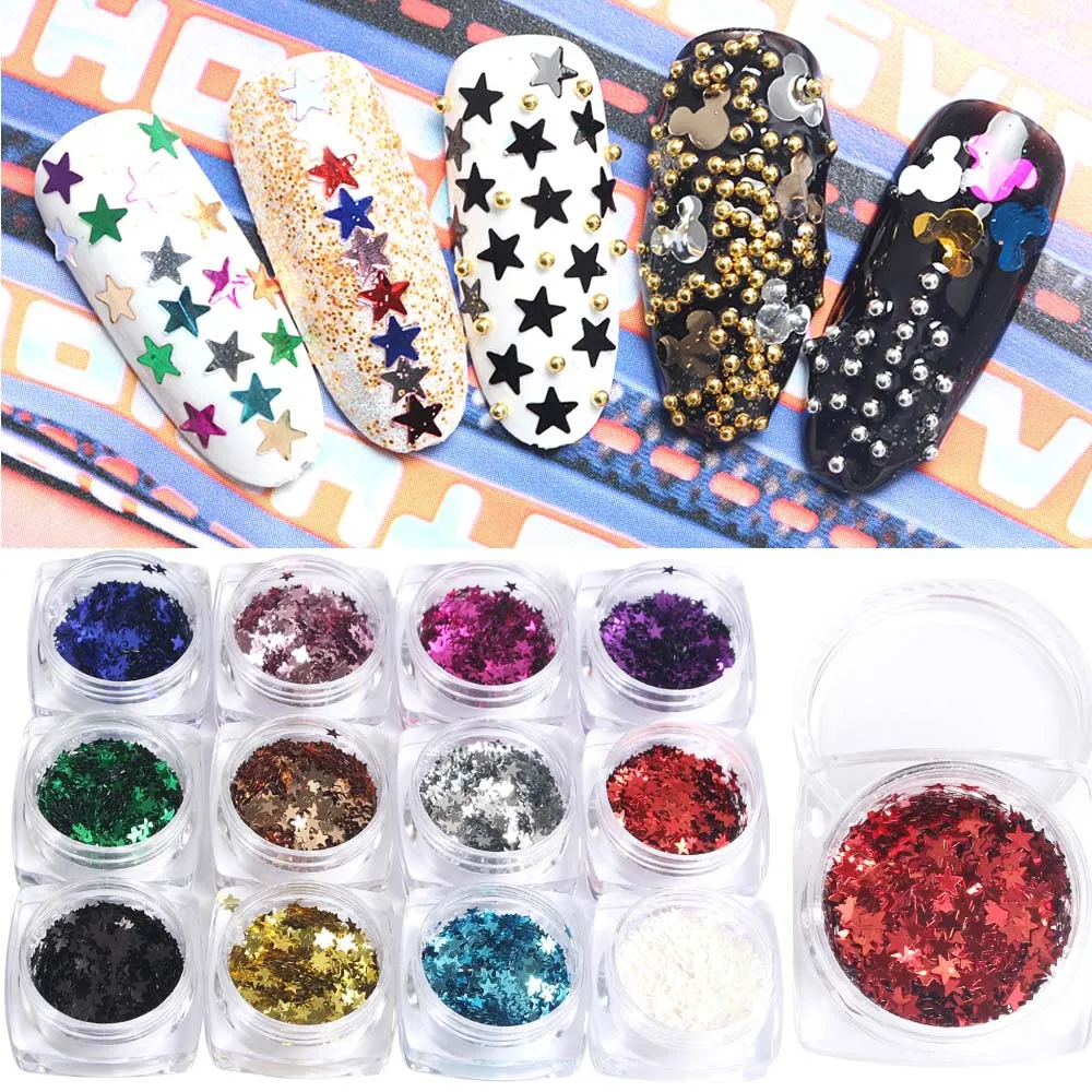 100% brand new and high quality Nail Art Sequins Star Decorations Package includes: 12 boxes of Star sequins