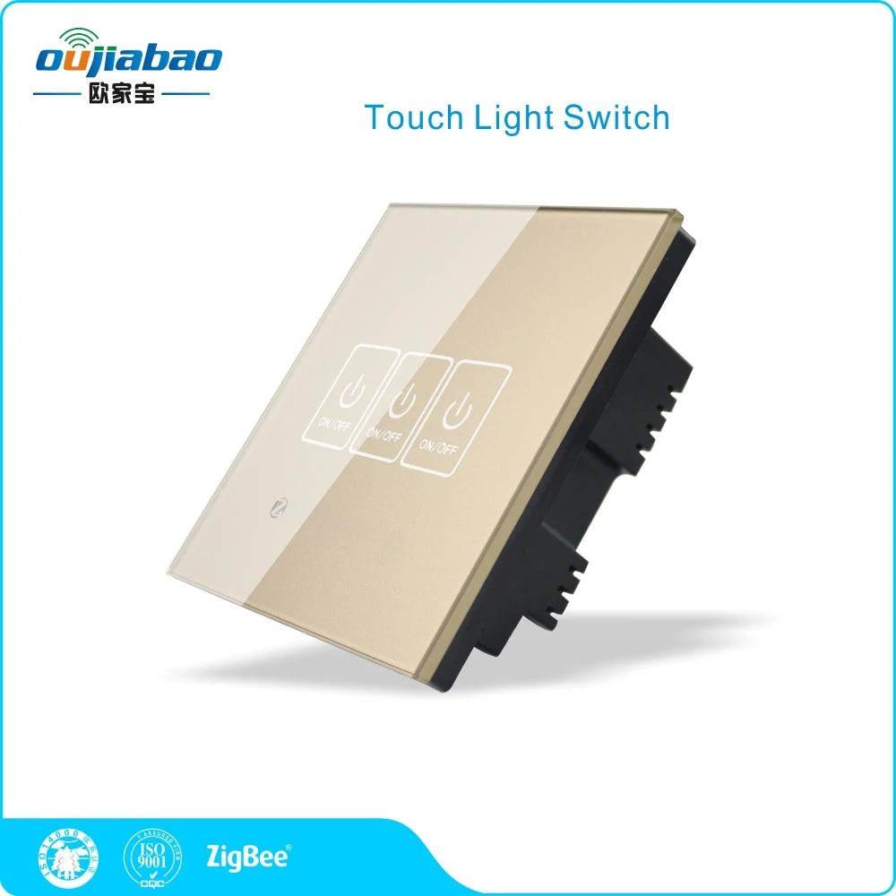 Oujiabao 86 Wall Switch 3 Gang ZHA1.2 Touch Light Switch ZeroFire Switch for Home Automation Item:ZHA1.2 Touch Light Switch(3 gang) Model:OJB-SW302-Z Product Description Product Introduction Oujiabao Single/Zero Fire Switch useZigbee HomeAutomation V1.2(ZHA1.2).Useyour smartphoneto turn on and offlights although you are faraway from home. Easy to use and save energy. Single fire switch just need to connect live line. Zero fire light switch should connect both live line and netural line. Key Features 1. Compliant with Zigbee Home Automation V1.2 2. Using Home Zigbee networking technology, stability and reliability. 3. Support APP remote control. 4. Inductive touch button, safety and reliability. 5. Imported TI processor and Touch Key IC. 6. AC power supply, optional single fire switch/zero fire switch. 7. Backlight automatic adjustment, ultra low power design. 8. High quality tempered glass panel, high quality flame resistant material. Technical Parameters Power Supply: AC 85~250V 50/60Hz Wireless Protocol: Zigbee Home Automation V1.2 (ZHA1.2) Wireless Frequency: 2.4G (2400MHz - 2483.5MHz) Static Power : <0.1W Working Temperature: -10?-80? Working Humidity: <85%RH(o condensation) Load Capacity: Single Fire one-way load: <200W whole load: <400W min load: >10W Zero Fire one-way load: <2000W whole load: <5000W Dimension: 86(L)*86(W)*32(H)mm Installation Click here Check price!!!