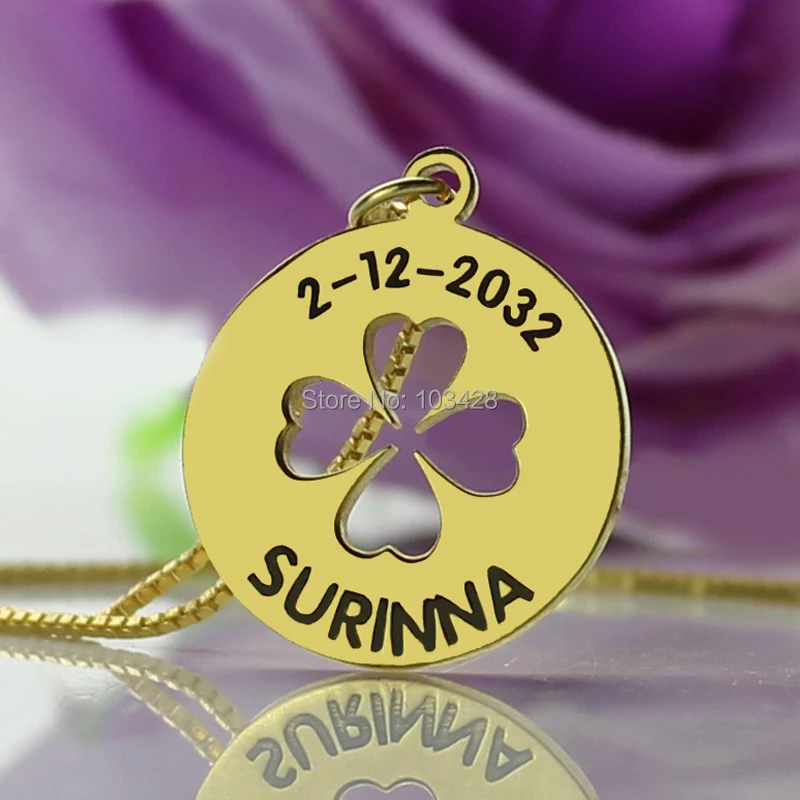 Personalized Childrens Name Bar Necklace Rose Gold Four Leaf Clover Jewelry Engraved Lucky Charm for Christmas Gift US$ 29.99/piece