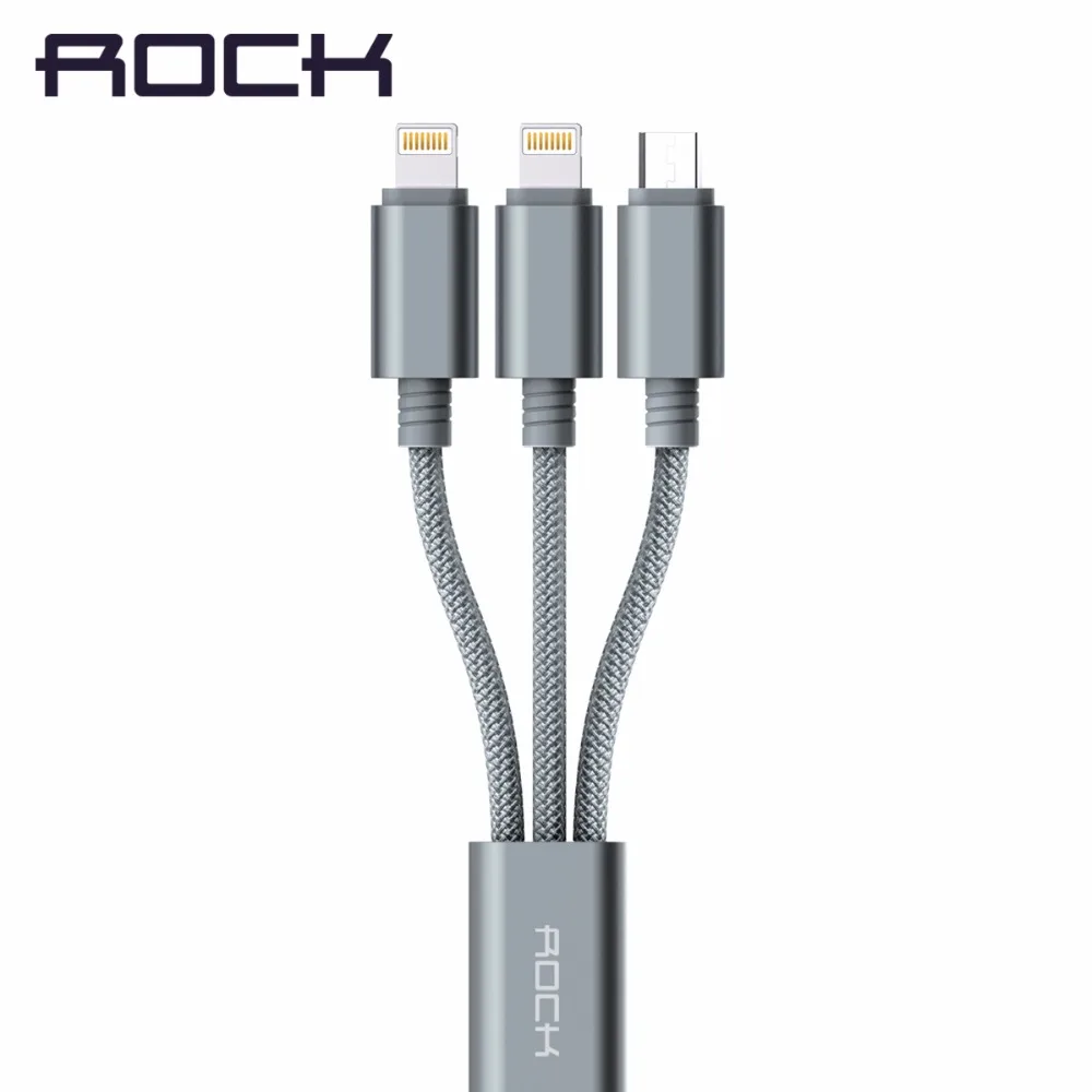 ROCK 3 in 1 Charging USB Cable for iPhone 5s/6/6s/Samsung/Xiaomi/Meizu/Huawei, one Micro USB cable and two cable for iPhone 5s