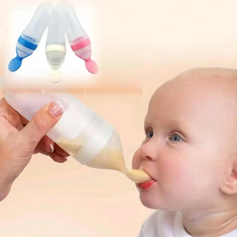 Silicone Baby Feeding Bottle With Spoon Food Supplement Rice Cereal Bottle Baby Squeeze Spoon Silica Gel Spoon