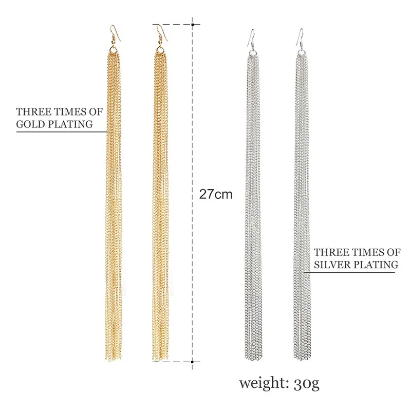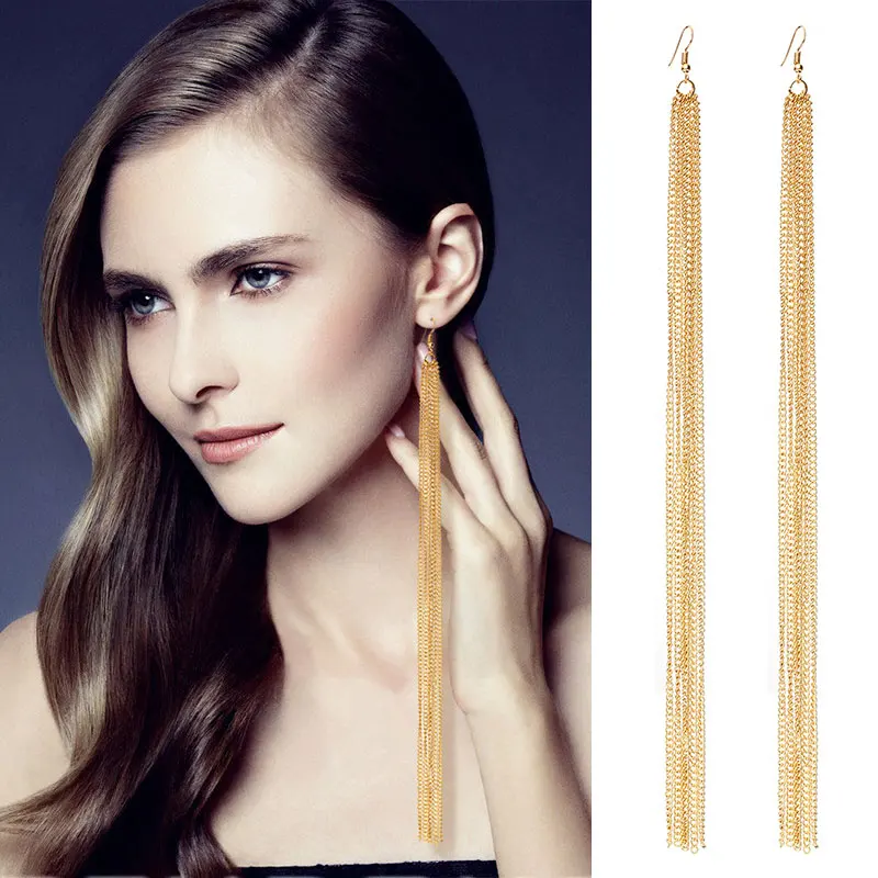 Tassel Long Earrings New Arrival Female Fashion Brand Jewelry Gold/Silver Jewelry Exaggerated punk Dangle EarringUSD 2.19/pair