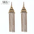 2016 New Bohemia Long Tassel Earrings Vintage Carving Drop Earrings Gold Plated Triangle Dangle Earrings for Women Bijoux femmeUSD 2.97/pair