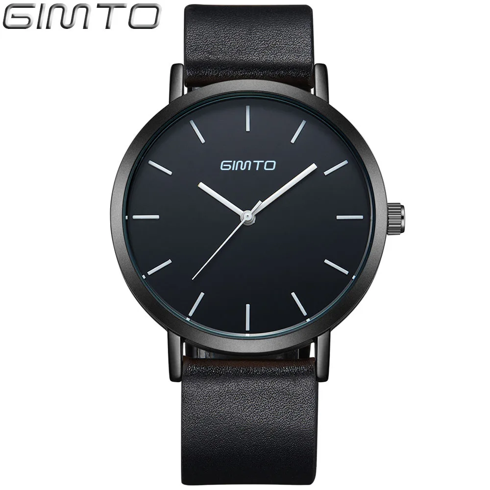 The GIMTO brand Clock leather Full Black Watch men Quartz-watch watch women leather Wristwatches Quartz Watch Relogio Masculino
