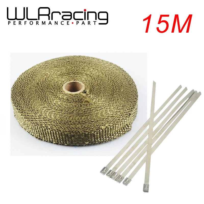 1"x 50\' Premium Exhaust Heat Wrap Manifold Wrap Titanium Lava Fiber 6pcs TiesExhaust heat wrap is simply wrapped around exhaust headers or turbos to retain the heat in the gas.Thus reducing under-bonnet temperatures and induction temperatures. Cooler air in the engine baygives better performance.Features:Reduces under-bonnet temperatures by halfImproves power & protects other componentsSuperior durability and heat retention