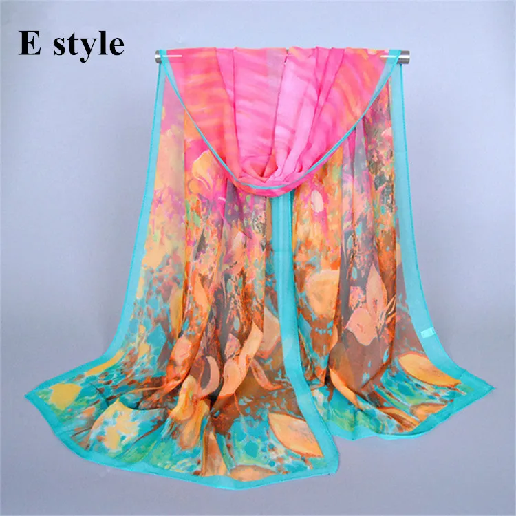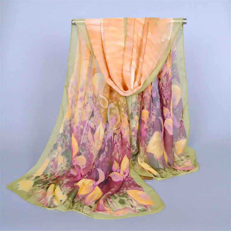 Women Scarf Chiffon Floral Printings Oil Painting Silk Scarf Bandana Female Scarves 160*50cm foulard femme Birthday Gifts WJ0151USD 4.84/piece