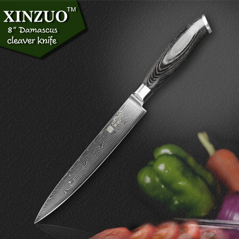 Product name:8 inches Damascus cleaver knife. Category :Ya series Parameters:length: 336 mm, blade length: 201 mm, blade width: 30mm,blade thickness: 2.3 mm,, net weight: 200.3g. Material:Japan Damascus 73 layer steel & VG10 steel core grade material. Handle:High quality K133 colorwooden handle, mirror light processing. Use for a long time not to distort, not faded, not shrinking, tasteless environmental protection. Hardness:60-62 HRC. Features:sharp and durable; Super anti rust; Light energ. Craft:multilayer Damascus steel forge and mirror polish. characteristics:high-density, very sharp, high hardness, high toughness, pretty comfortable, high-grade,etc. Sharpness level:level of cutting force: 6.0-8.0 N international standards. Packing :gift box by hand, black corrugated cardboard (shockproof, pressure defense, mould proof). Click here Check price!!!