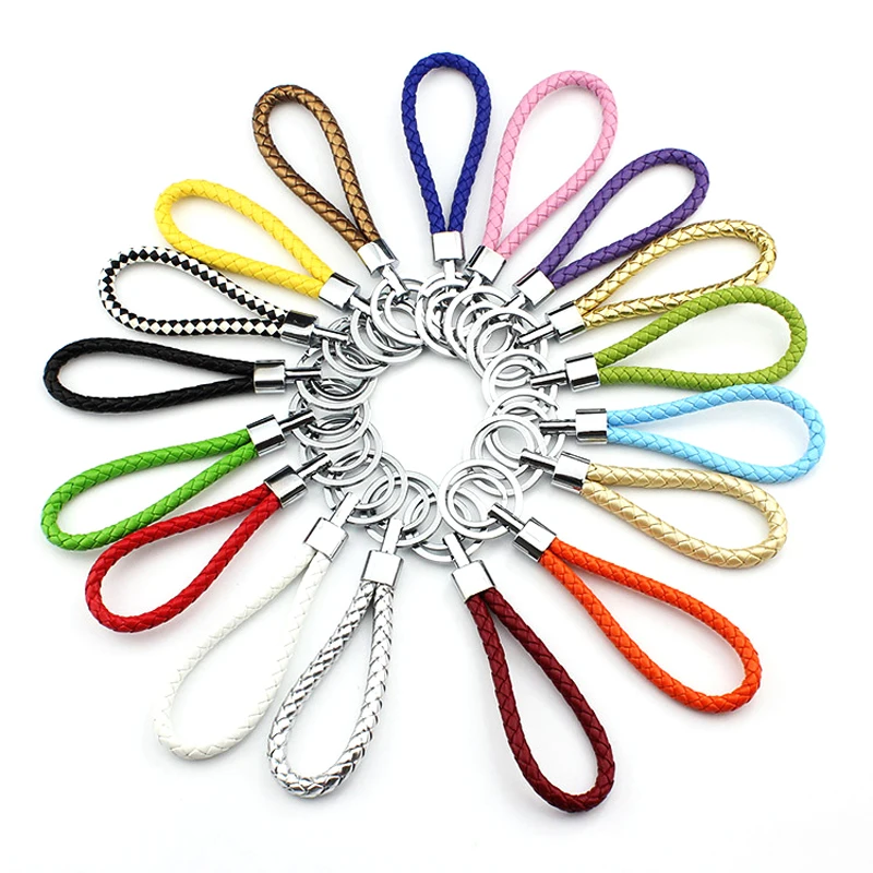 10 Colors Fashion Braided Leather Tag Key Chain Pu Leather Knitted Car Keychain Auto Keyring Gift wholesale llavero PWK0474