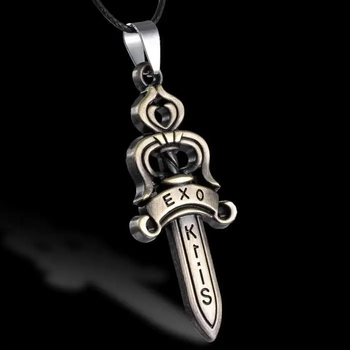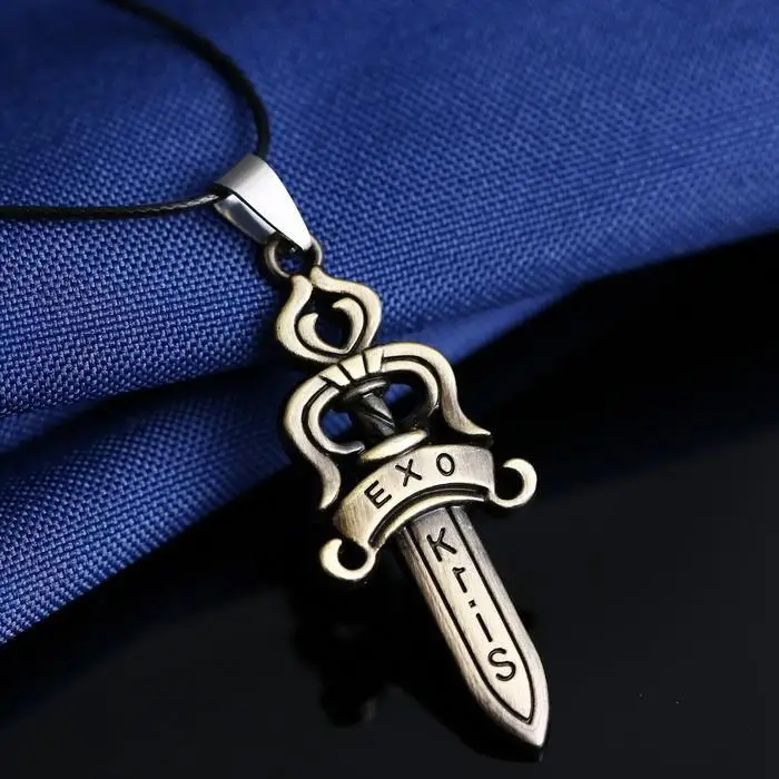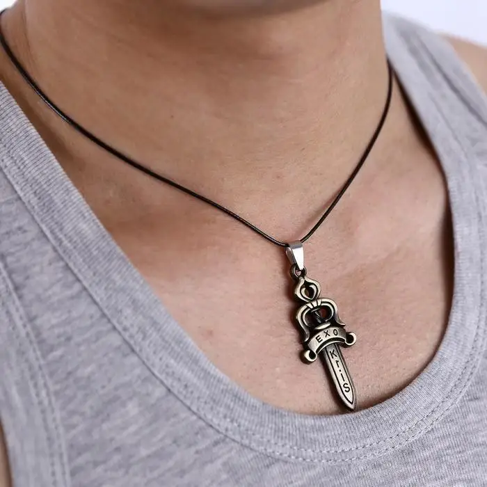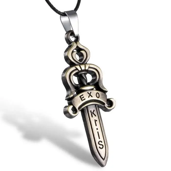 | 2015 NEW Fashion jewelry for men EXO Kris letter engraved necklace sword pendant necklaces powerful charm bijoux |