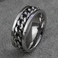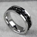 Men\'s Fine Jewelry Silver Tone Spinner Band Ring With Black Chain Pattern 316L Stainless Steel 2*1PCUSD 7.31-7.44/lot