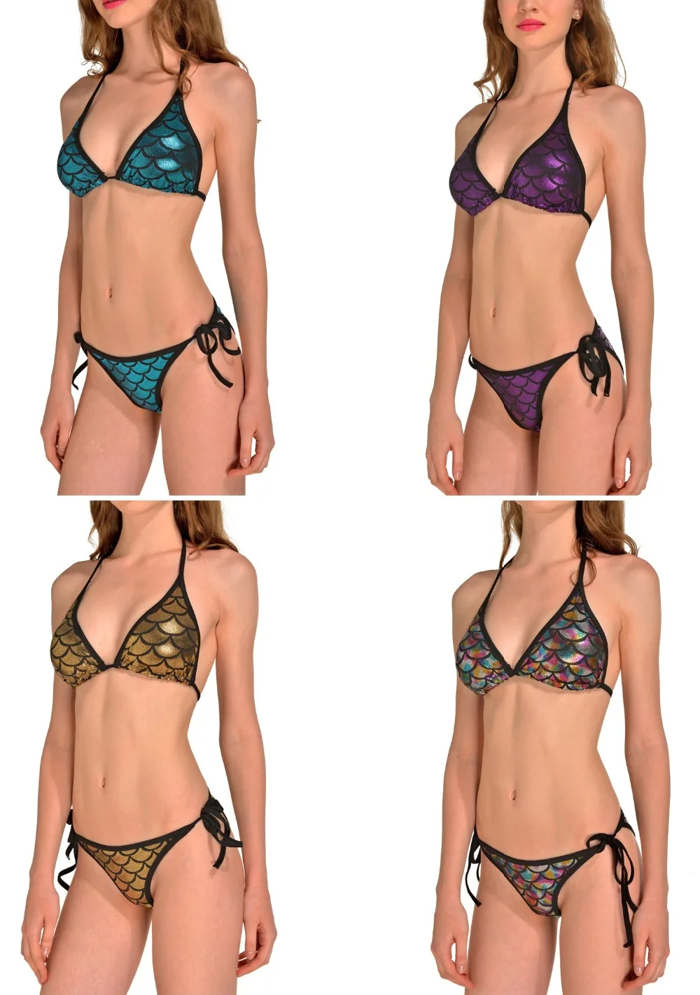 2017 New Arrival 9 Colours Women Sexy Bikini Set Fishing Scale Pattern Swimsuit Halter Top Summer Beach Swimwear Free Shipping