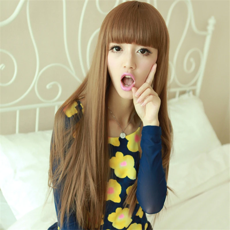 70 cm Long Straight Brown Fahion Hair Anime Cospaly Wig Young Synthetic Wig Sexy Fashion Full Head Hair for Women Lady
