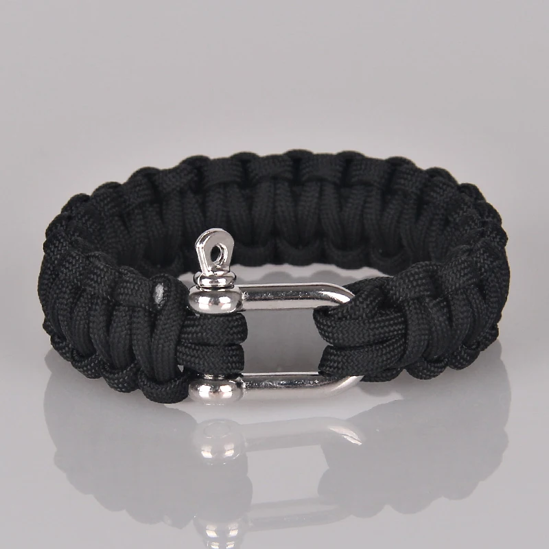 Women Men Outdoor Paracord Survival Bracelets with Stainless Steel Bow Shackle handmade friendship bracelets 5 Colors choose Color: As picture shown Package: opp bags Stock: in stock item Material: Stainless steel