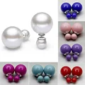 925 Sterling Silver Double Face Sided Women Round South Sea Shell Pearl EarringUSD 5.90/pair