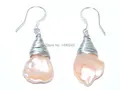 4 inches 925 Sterling Silver Natural Pink Drop Keshi Baroque Pearl EarringUSD 3.90/pair