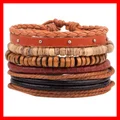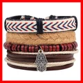 Costume Jewelry Handmade Leather Bracelet Adjustable Size Wooden BraceletUSD 4.99/set