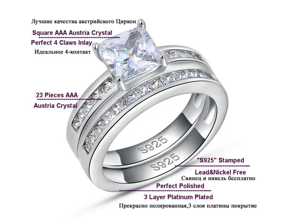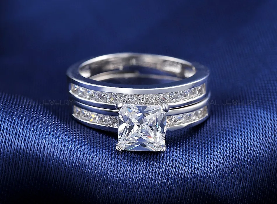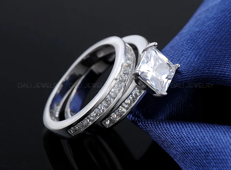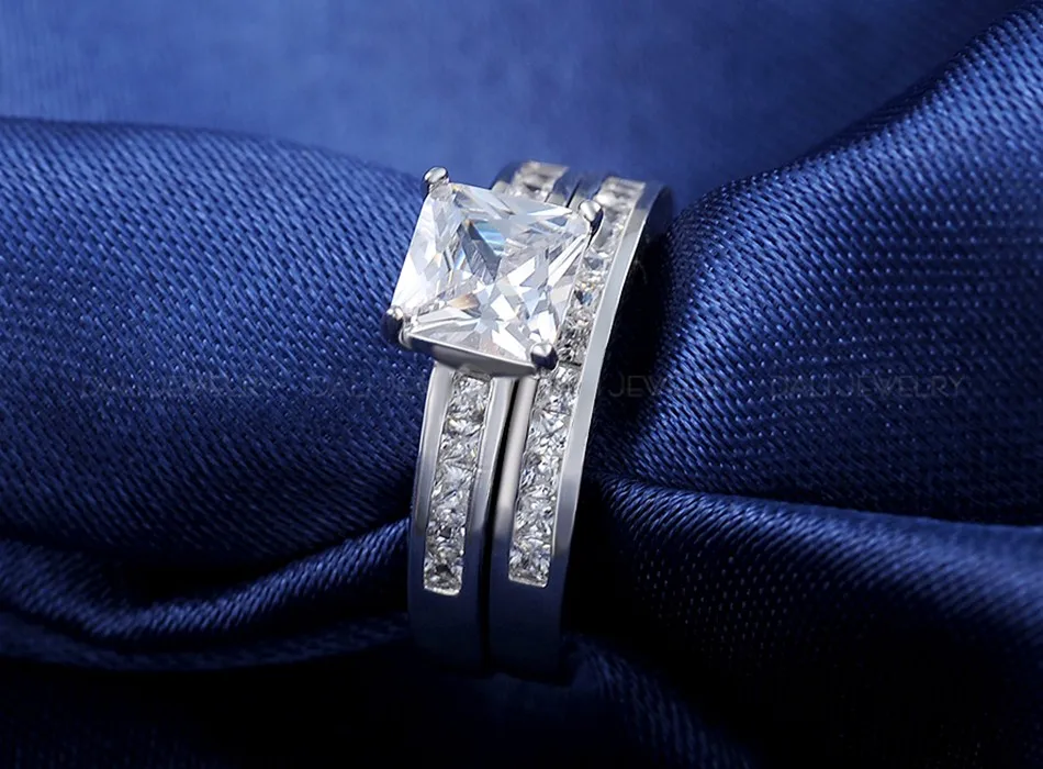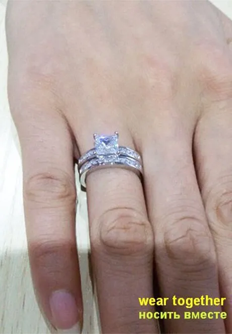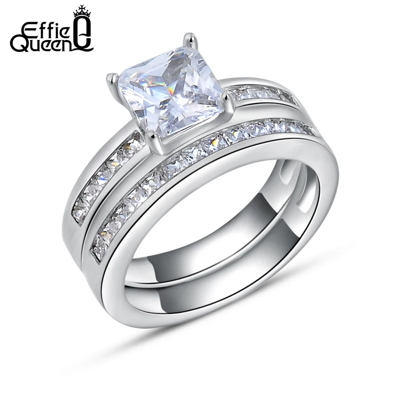 Effie Queen Woman Finger Ring Platinum Plated with 0.8 ct Princess Cut Cubic Zirconia Women Wedding Ring Set, 2 Piece/Set DR28 Material:WhiteBrass,Platinum Plated,AAA AustrianCubic Zirconia Guarantee:Colorwill not changed into black,red,or brown(if you cut or scratch ourjewelry,you couldsee inside metal issilver color,that\'s why we guarantee that color will not changed) Size:Please check the picture below Wearing Occasion:Dating / Daily / Wedding / Anniversary / Propose Gift for: Friend / Mum / Wife Fit for:Young and Maturity Female Photo Gallery
