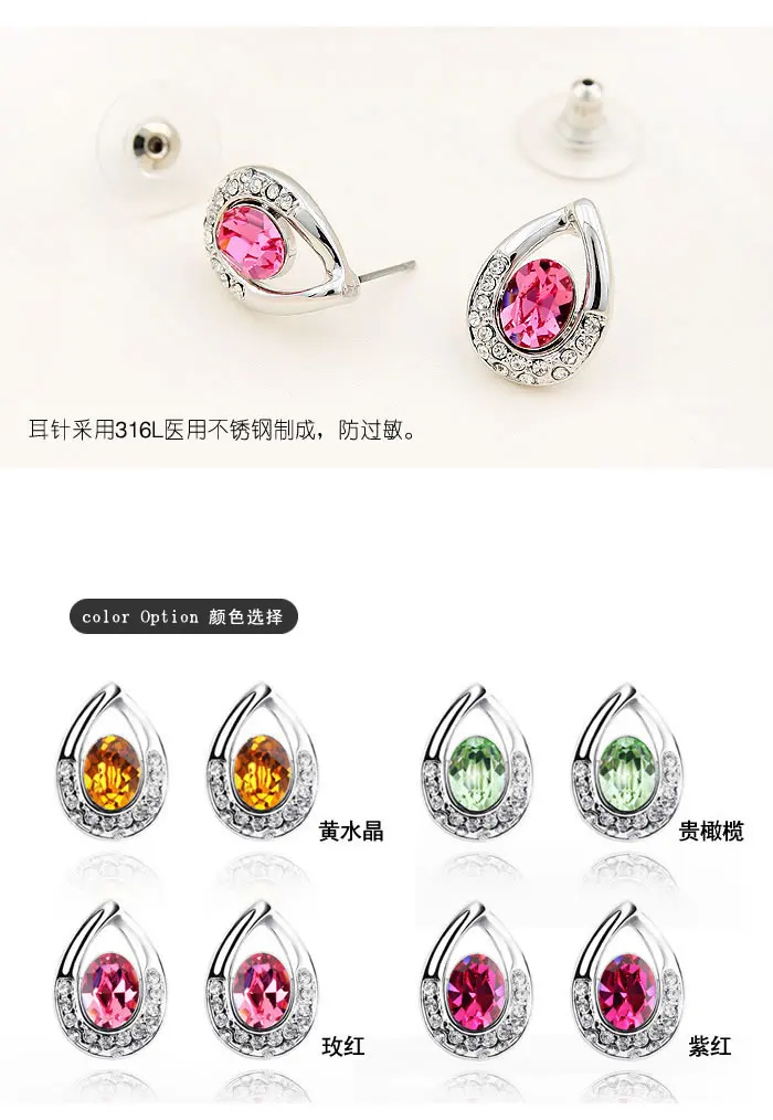 Exclusive White Gold Plated Waterdrop Stud Earrings Made with Swarovski Element Fashion Crystal Brincos for Woman Jewelry Bijoux
