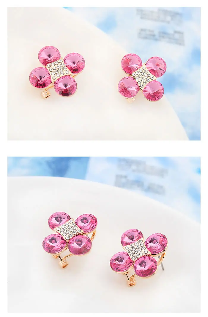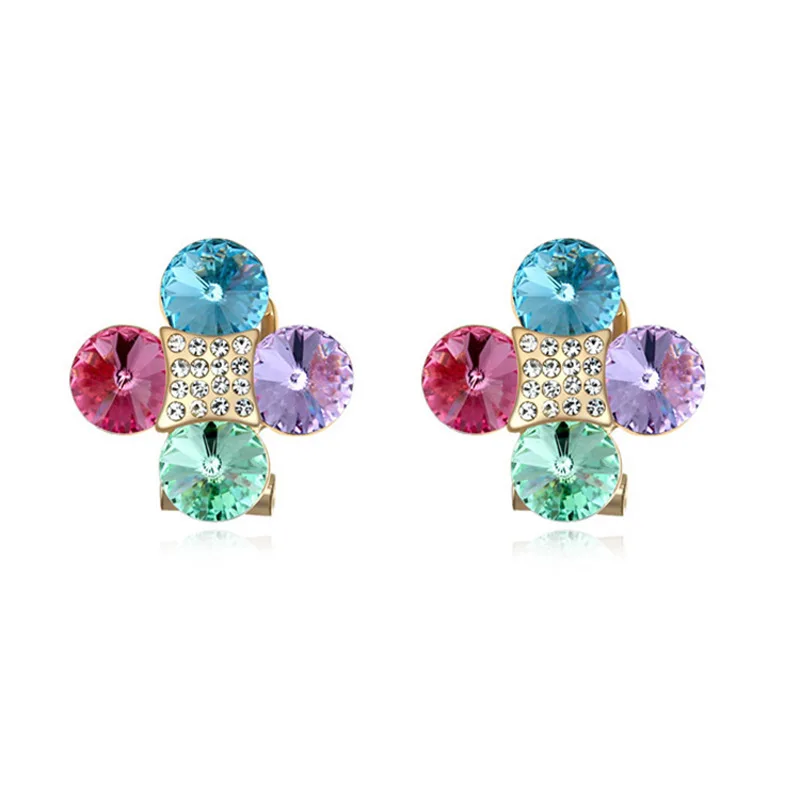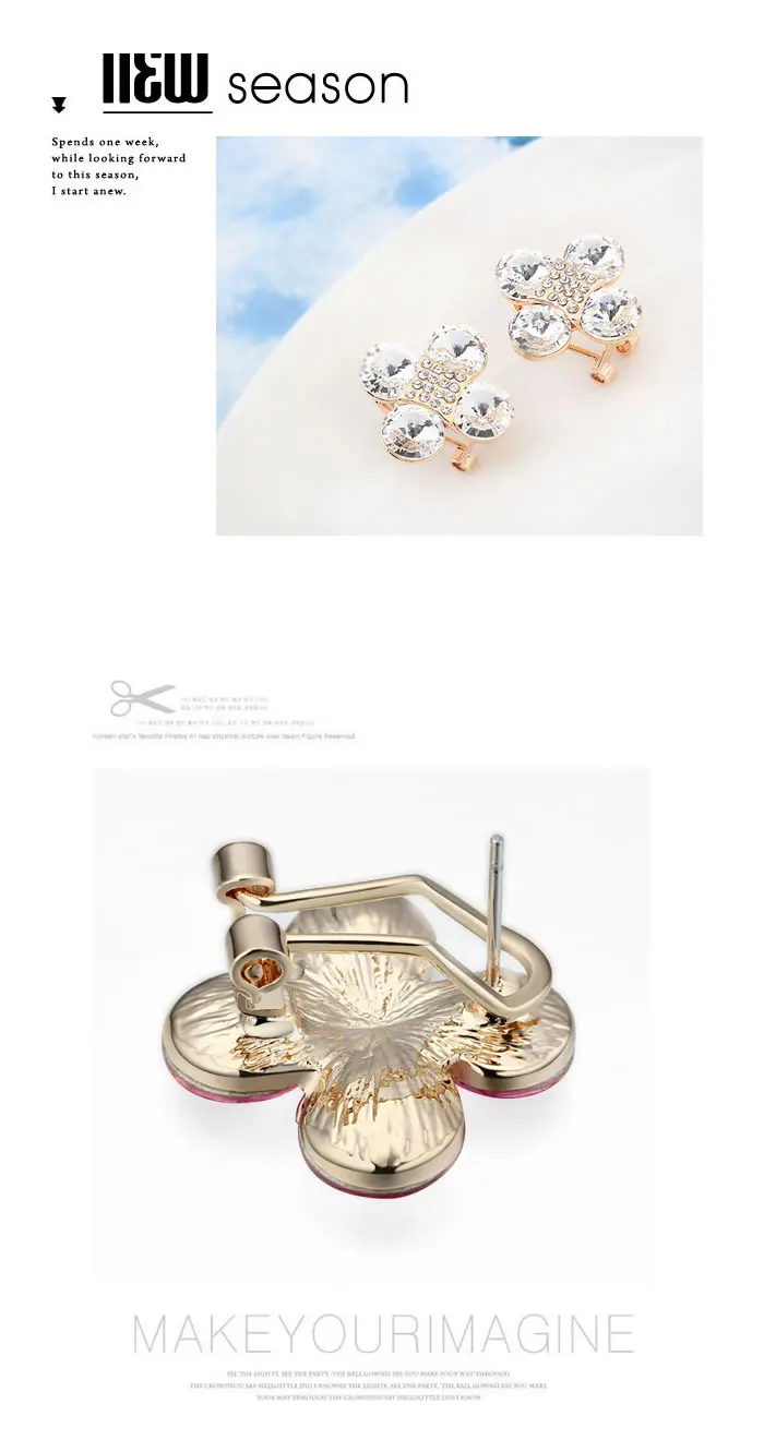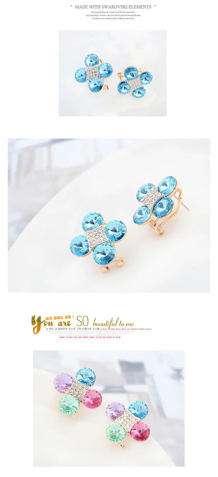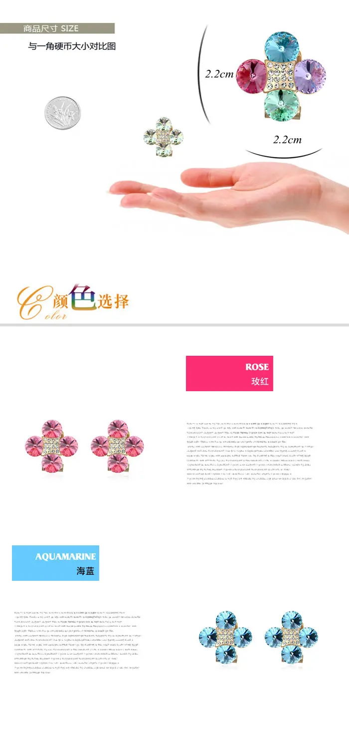 Exclusive Women Stud Earrings Made with Swarovski Element Gold Color Brincos Jewelry Mujer Bijoux Round Crystal from Swarovski