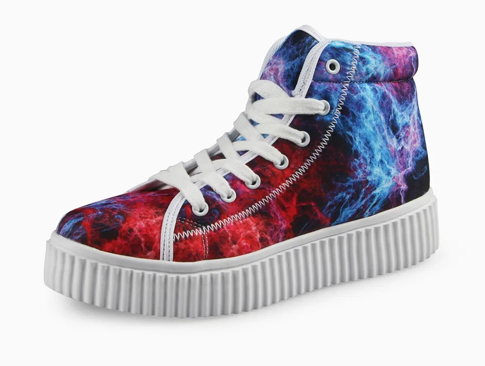 New Fashion Women Casual Shoes Zapatos Mujer Brand Women Galaxy Space Star Pattern Shoes High-top Women Footwear Chaussure FemmeUSD 37.99/pair