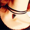 Fashion Punk Triangle Pendant Necklace Vintage Choker Necklaces Retro Black Leather Cord Chain Collars Whole Sale Drop ShippingUSD 1.89/piece