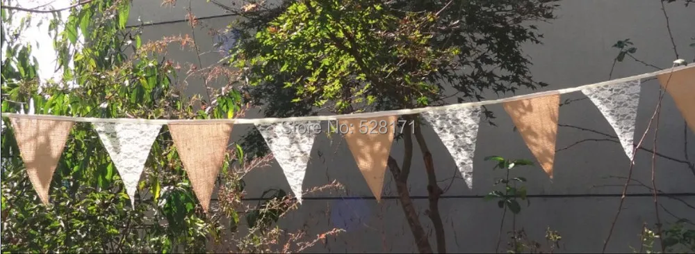 Flag size: 18x20.5cm, one pack total 11 pcs flag, nearly 270CM. Thanks Description: Ideal for adding those decorative touches to weddings, christenings, birthday parties, festivals, markets, fetes, fairs and street parties. Decorate your wedding marquees, halls, gardens, bedrooms, market stalls, craft shows, shop fronts. Our bunting is made using polly cotton fabric. The flags are cut using a rotary pinking cutter, giving neat crisp edges.