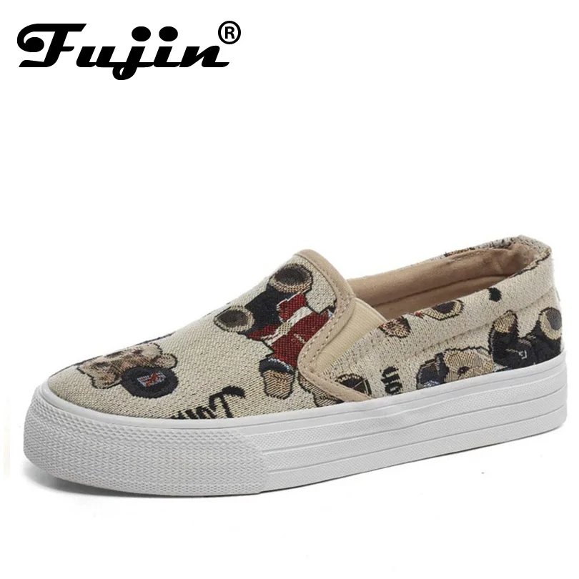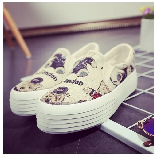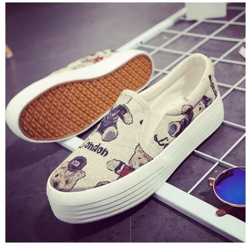 2015 Hot Sale Fashion Sneakers On Platform Shoe Female Canvas Shoes For Women Cartoon Print Canvas Woman\'s Slip On Casuals L86