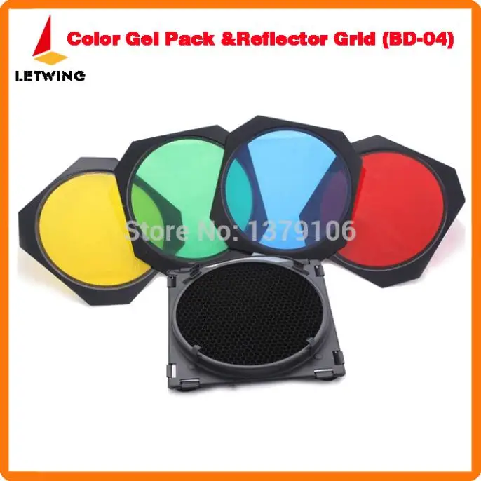 Studio Flash Accessories BD-04 Universal Mount BD-04:Barndoor kit, including 4-wing barndoor, color filters,honey comb,178mm,6mm*6mm