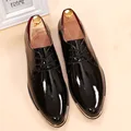 glossy dress shoes white flat wedding shoes patent leather loafers mens shoes luxury brand italian brand oxfords shoes for menUSD 46.00/pair