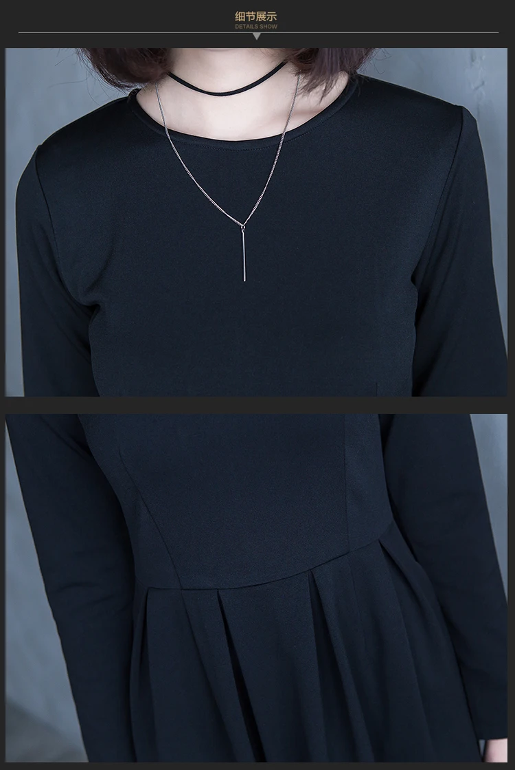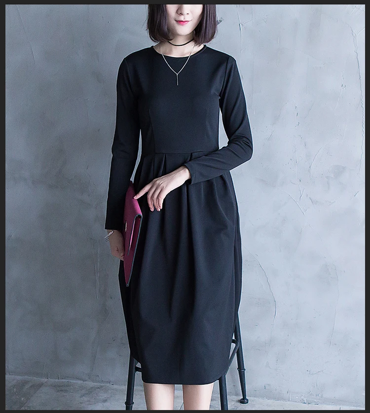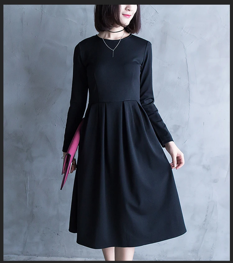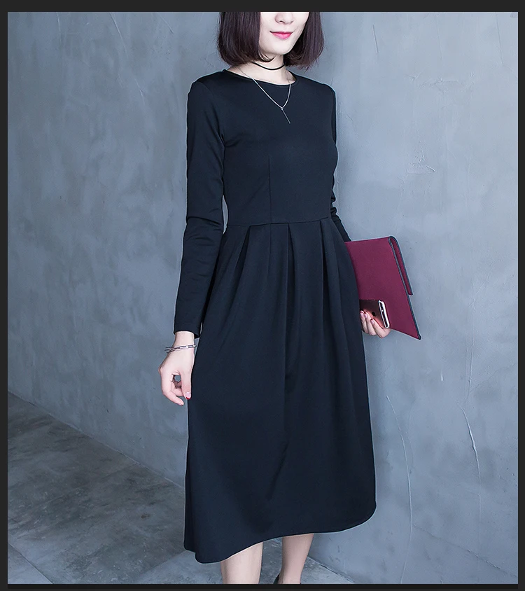 High Quality 2017 Spring Autumn Woman New Pure Color Pleated Dress Long Sleeve Elegant Elastic Female Casual Autumn Dress