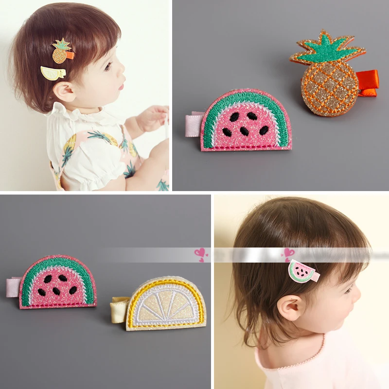 Hot Cute Embroidery Fruit Girl Child Baby Hairpin Full Covered Hair dress Kid Duckbill Hair Clip