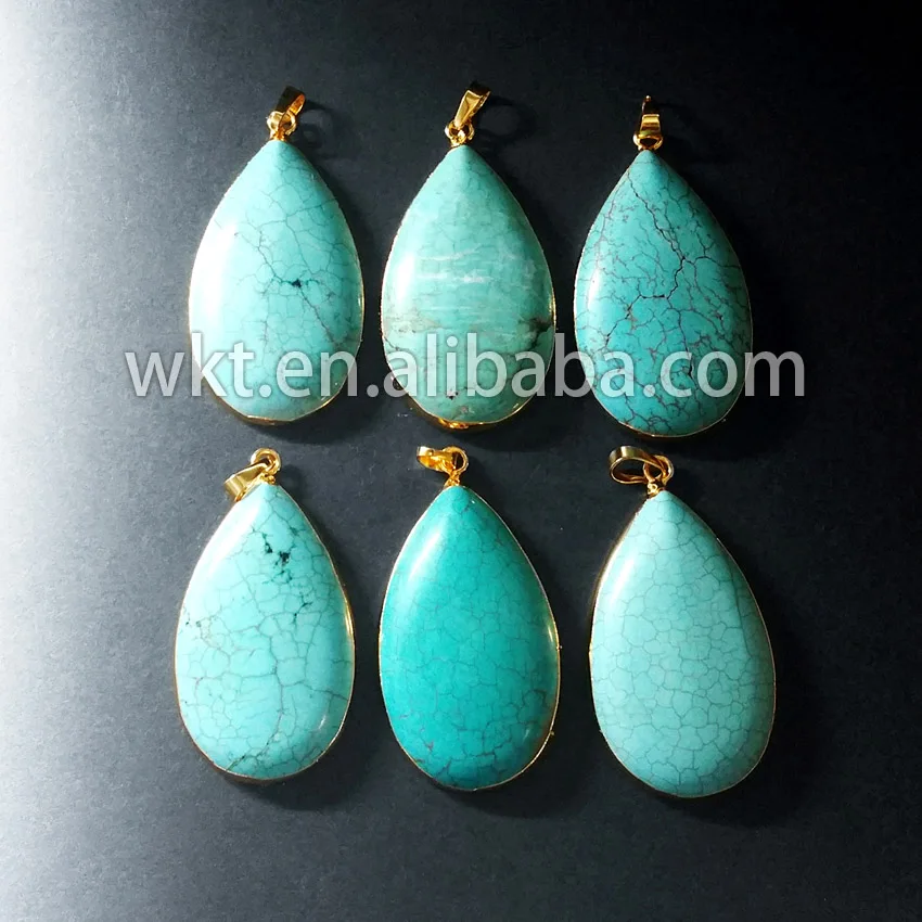 Holiday Sale Natural green turquoise teardroppendants fashion 24k gold electroplated edged turquoise stone jewelry pendants