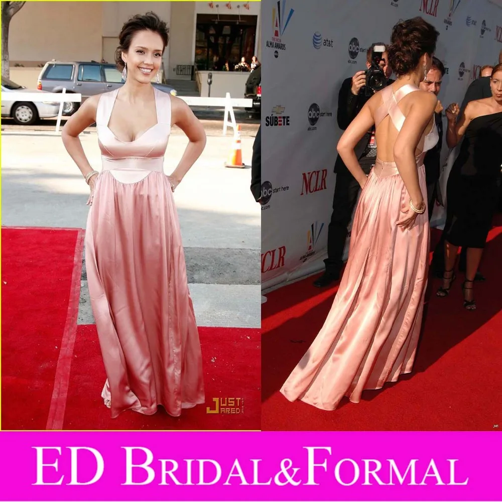 Jessica Alba Two Tone Dress at 2008 Alma Awards Red Carpet Sweetheart Backless Celebrity Evening Gown Satin Open Back Prom Dress 2. Waist =