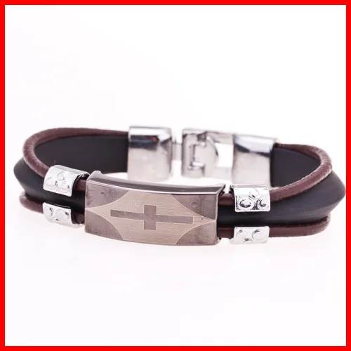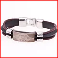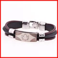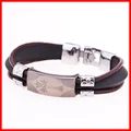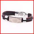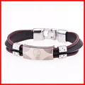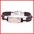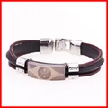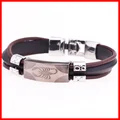Fashion Peace Mark Engarved Leather Bracelet High Quality Mens Stainless Steel BraceletUSD 4.99/piece
