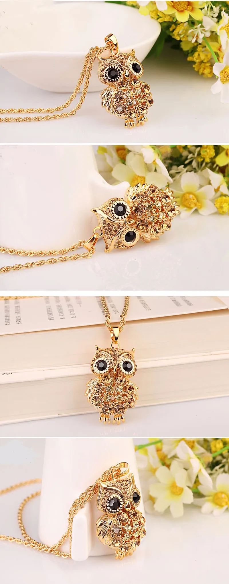 Lemon Value Fashion Charms Crystal Owl Pendants Bohemia Vintage Punk Gem Rhinestone Maxi Long Necklaces Women Jewelry Gift A329USD 2.45/piece