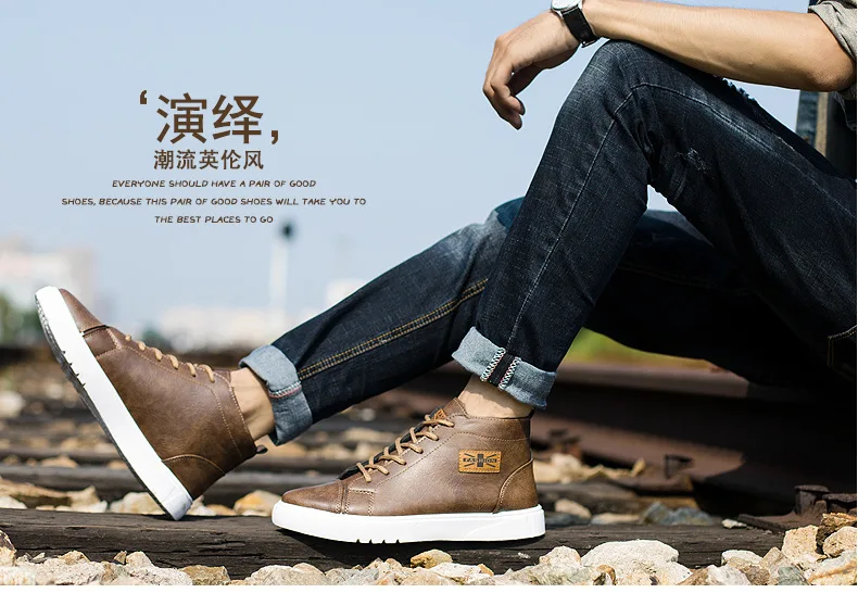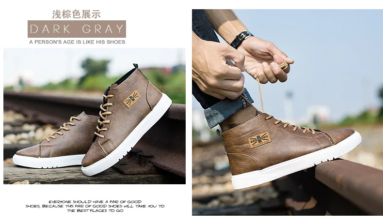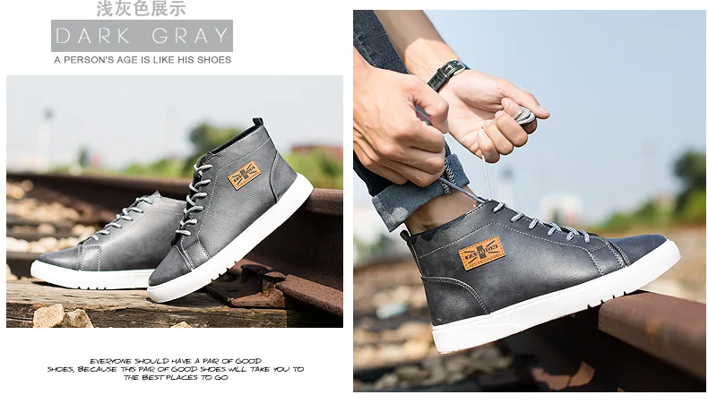 Luxury Brand Men Shoes Breathable Casual Shoes Top Quality High Help Leather Shoes Male Student Fashion Shoes Black Brown Gray 5212303590958557 HOT Items