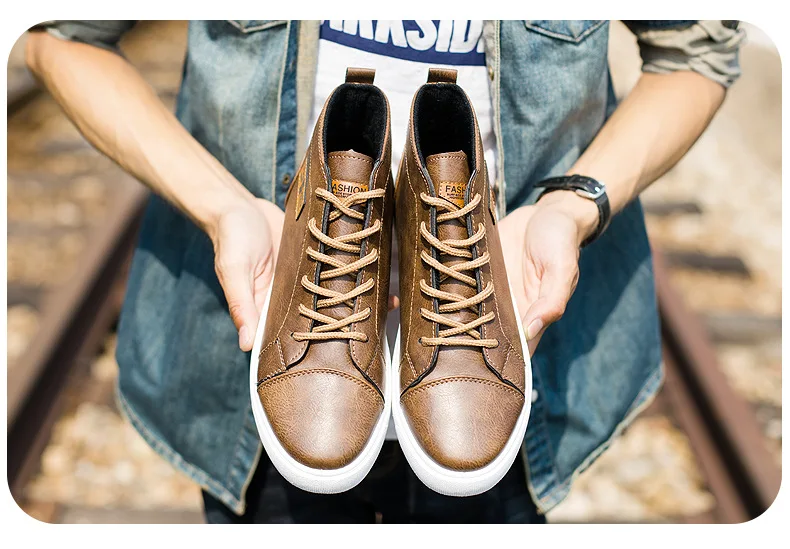 New 2016 Autumn Winter Men Shoes High-Top Casual Lace-Up Men\'s Boots Nubuck Leather Warm Ankle Boots Fashion Men Flats Shoes 2AUSD 39.68/pair