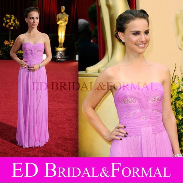 Natalie Portman Pink Prom Dress Sweetheart Beaded 2009 Oscar Awards Red Carpet Chiffon Evening Gown vestidos formales 2. Waist =