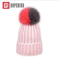 2017 Real Double Color Fox Fur Pompon Winter Hat Women Caps Warm Fashion Hats Female Ski Knitted Cap BeanieUSD 22.17/piece