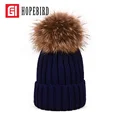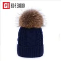 Fashion Real Raccoon Fur Pompon Diameter 16CM Winter Wool Adult Hat For Women Autumn Knit Ski Knitted Cap Thick Gorros WarmUSD 25.00/piece
