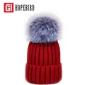 Fashion Winter Real Fox Fur Pompon Hats Cap Women Knit Caps Beanie Thick Warm Girl Ski Super Pom Hat Beanies Female USD 22.17/piece
