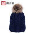 2017 Winter Real Raccoon Fur Hat Cotton Women Pompon Fashion Cap Winter Thick Warm Female Wool Knitted Hats Pom BeanieUSD 20.22/piece