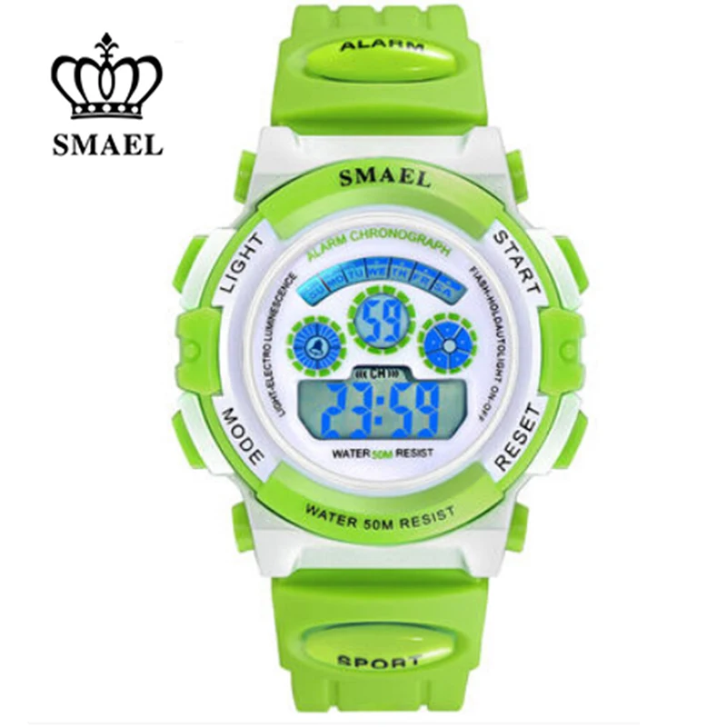 Popular Students LED Sport Watches Rubber Shock Resistant 50m Waterproof Cartoon Watch for Kids Gifts Digital Wristwatch WS0704B Description: TheSMAELrangeofcolorfulandexcitingYouthwatchesdomuchmorethanletchildrenexpressthemselves.Nomatterwhatyourchildlikesatthemoment,theSMAELYouthCollectionhasatimepiecefortheirwrist. Themainfeatureofthischildrenwatchis digital diaplay, PUwatchband,50Mwaterproof,shockresistant,durable,alarm,lightandeasytoclean,thismultifunctionalsmartwatchisperfectforyourkidschoice. Package Include: -1 * SMAEL Sports Watch -1* Gift Box For Watch -1*Warranty Card -1* Instruction Card