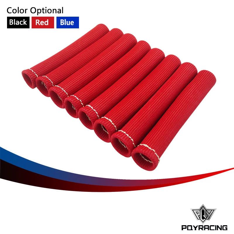 PQY- 8PCS/LOT Universal Fiberglass Spark plug Heat Protector Sleeve sleeving fuel A/C oil line wiring 6'BLACK,RED,BLUE PQY-SPH11