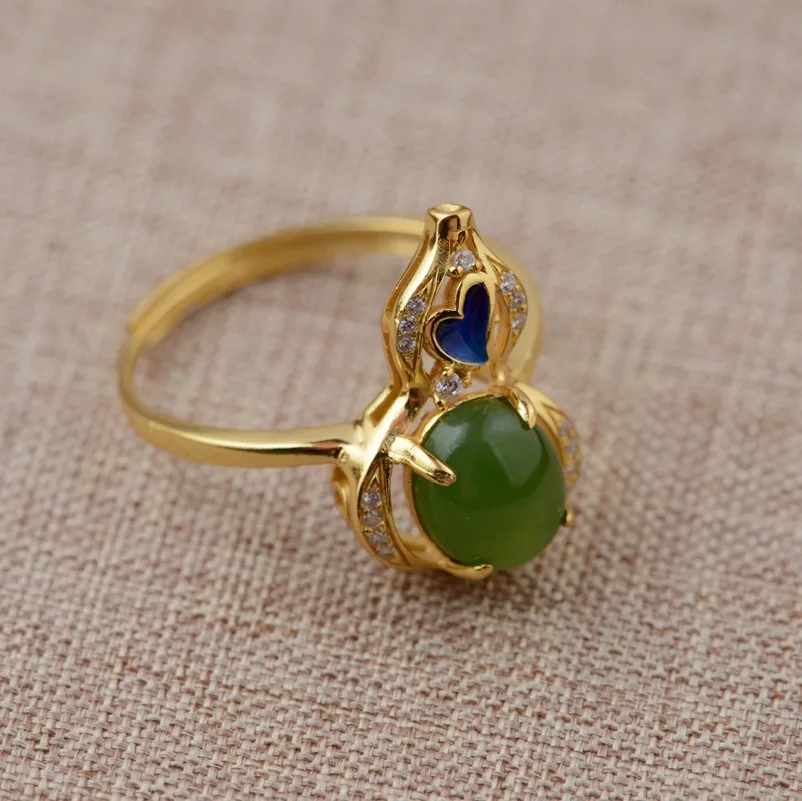 S925 silver inlaid jade ring opening micro electroplating wholesale inlay technology exquisite female explosion gift